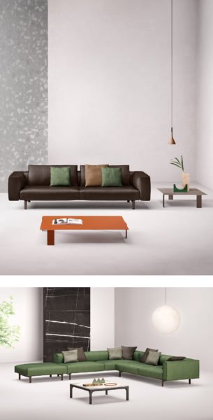 Veniamo infine alla selezione di divani in pelle della linea Todd, progettata da Toan Nguyen. Si tratta di sistemi componibili e modulari, che possono giocare con i colori dei rivestimenti e con le varie forme ed angolazioni.