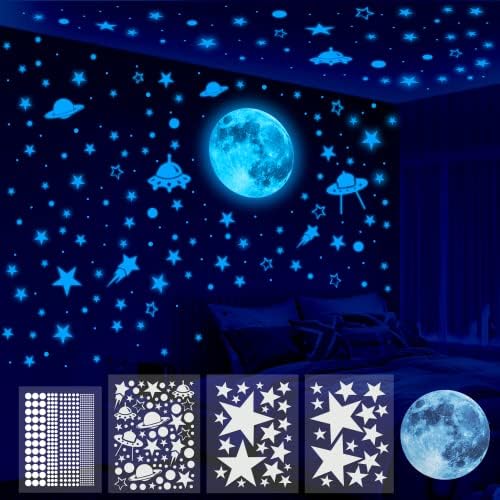 - Stelle Fluorescenti Adesive Soffitto, 581 pezzi Stelline Luminose per Cameretta, Adesivi da Parete Fluorescenti, Luna Autoadesivo Luminoso Decorazione