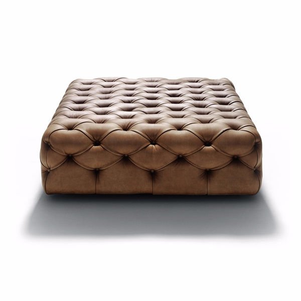Molto interessante anche il pouf capitonné di Studio De Padova, disponibile in 2 misure e diverse colorazioni. La struttura è in legno, il rivestimento è in pelle con lavorazione artigianale e imbottitura in poliuretano espanso.