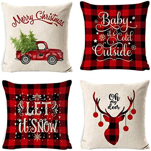 4 Pezzi Natale Fodere per Cuscini, 18 x 18 Pollici Natale Cuscini Decorativi per la casa per Fodere per Cuscini Decorativi Divano Cuscino Natalizio Fodere