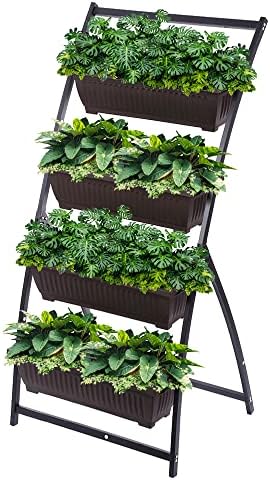 - Khomo Gear: fioriera verticale con 4 vasi per orto urbano per fiori e piante, giardino, terrazza, balcone, interno esterno, marrone e nero