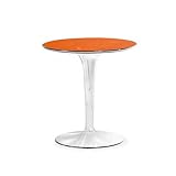- In PMMA, questo tavolino presenta una base ampia con un piede trasparente che va a contrasto con il piano del tavolo, qui in un acceso arancione.