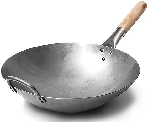 - Craft Wok Wok Tradizionale in Acciaio al Carbonio Battuto a Mano con Manico in Legno e Acciaio (diametro 35,6 cm, Fondo Tondo)/731W88