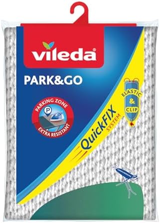 Vileda Park&Go Copriasse da Stiro Universale, in Cotone, Area Parcheggio, con Fermacorda, Grigio/Verde, 139 X 50 X 0.29 Cm