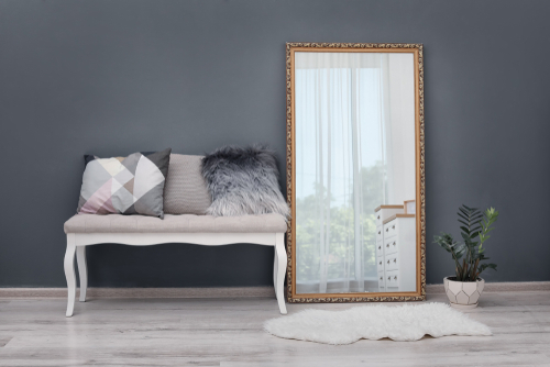 Un grande specchio appoggiato a terra e rifinito da una cornice importante può rappresentare un’idea semplice e vincente per aggiungere un tocco di classe a salotti o camere da letto.