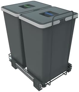 Il colore è grigio antracite e il sistema di scorrimento è a binario, per una pattumiera dotata di due divise sezioni al suo interno e che viene proposta al costo di circa 90 euro.