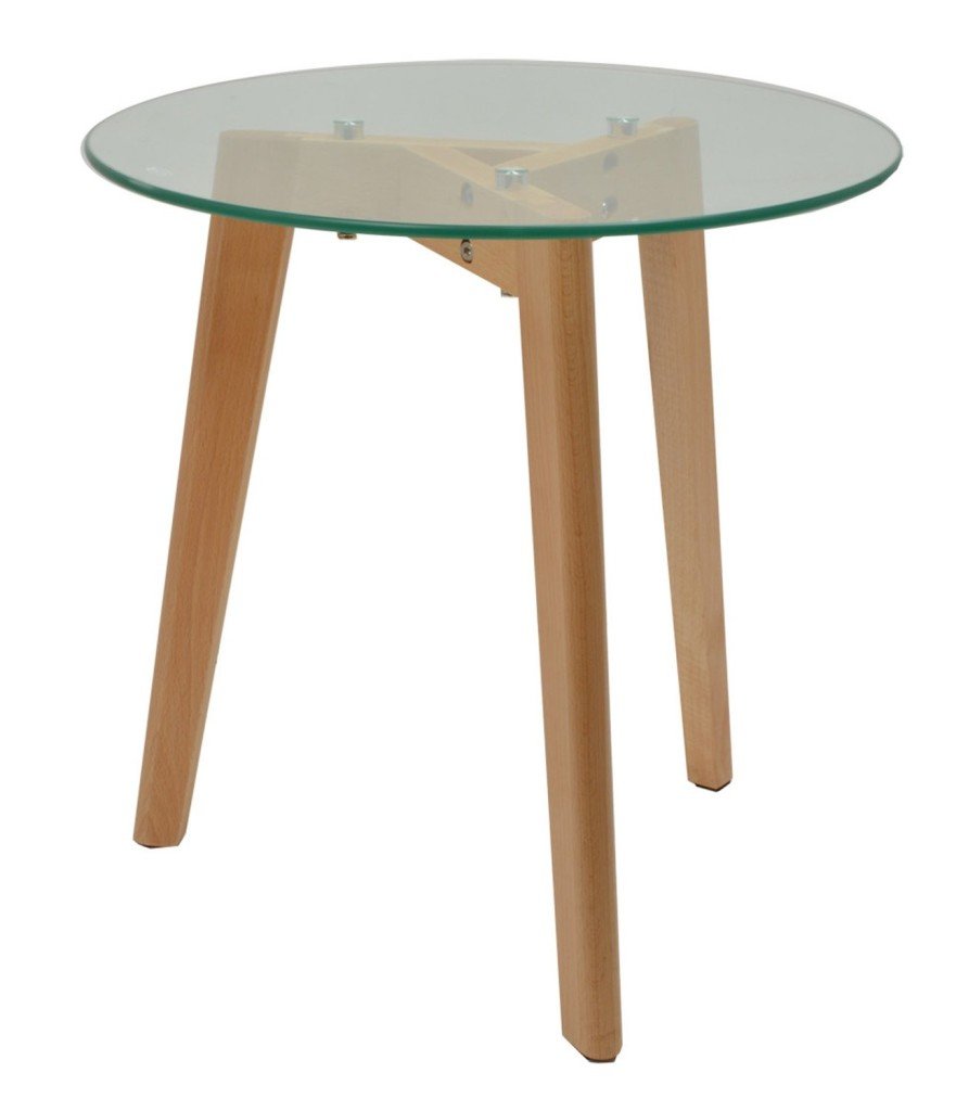Si tratta di un tavolino semplice e versatile, proposto da Ts Indeen, che vanta una base con tre gambe in legno di faggio e una lastra in vetro.