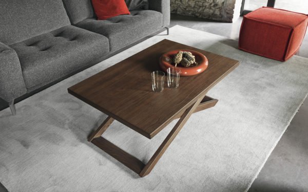 Sempre in tema di tavoli trasformabili possiamo citare il modello in frassino Sottosopra. Disponibile in diverse tonalità, con un semplice click passa da tavolino a tavolo da pranzo, allungandosi e regolandosi in altezza.