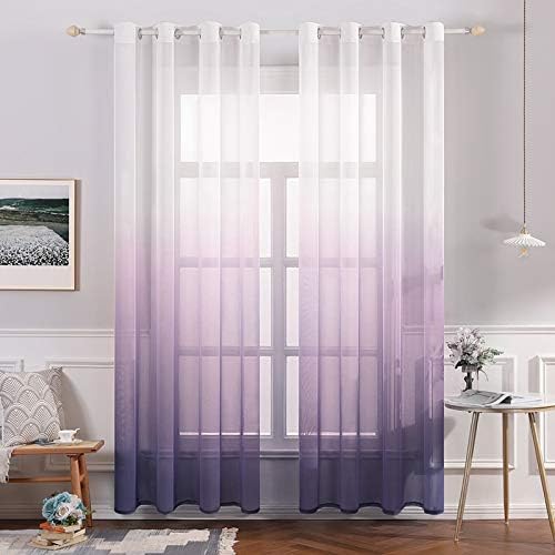 MIULEE Voile Tende Trasparenti con Occhielli Sfumato Verticale Tenda per Finestra per Soggiorno e Camera da Letto 2 Pannelli 140 x 260 CM Viola
